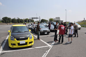 サービスエリアの入り口付近に集結して駐車したので、かなり目立って視線を集めていました。