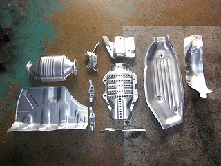 遮熱板・触媒カバー・触媒をブラスト塗装しました。