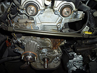 タイミングテンショナー・フロントクランクシールを交換します。