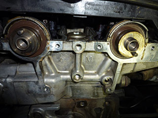 タイミングテンショナー・フロントクランクシールを交換します。