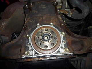 リヤクランクシールを交換します。