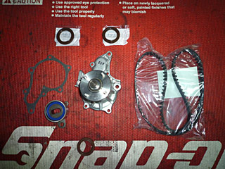 カムシール・タイミングベルト・タイミングテンショナー・フロントクランクシール・ウォーターポンプ・ウォーターポンプガスケットを交換します。