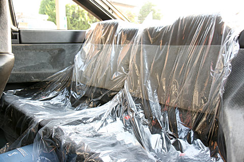 - リヤシート新車時ビニール貼り